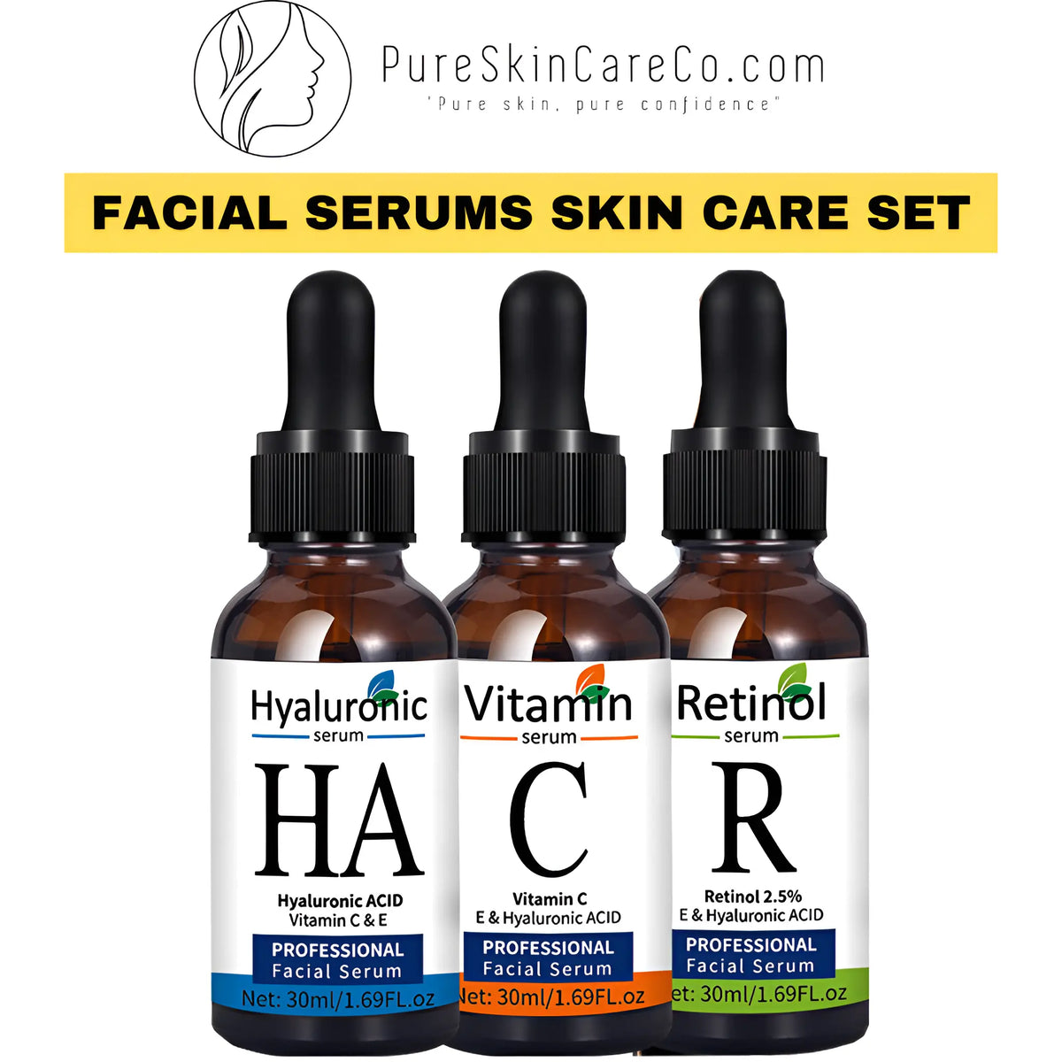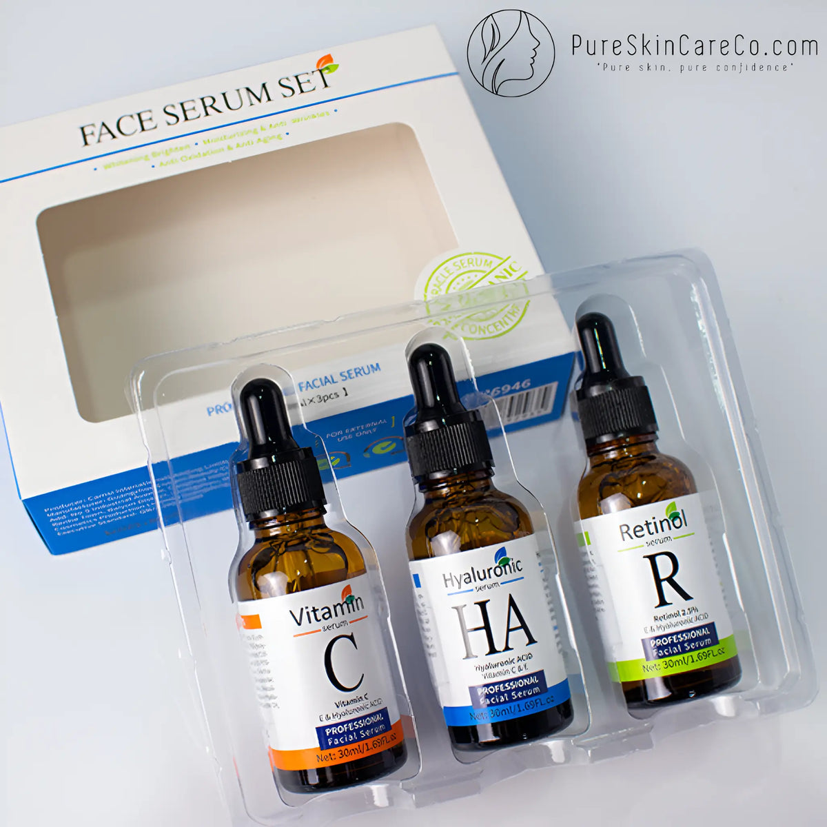 Facial Serum Trio: Vitamin C, Retinol & Hyaluronic Acid