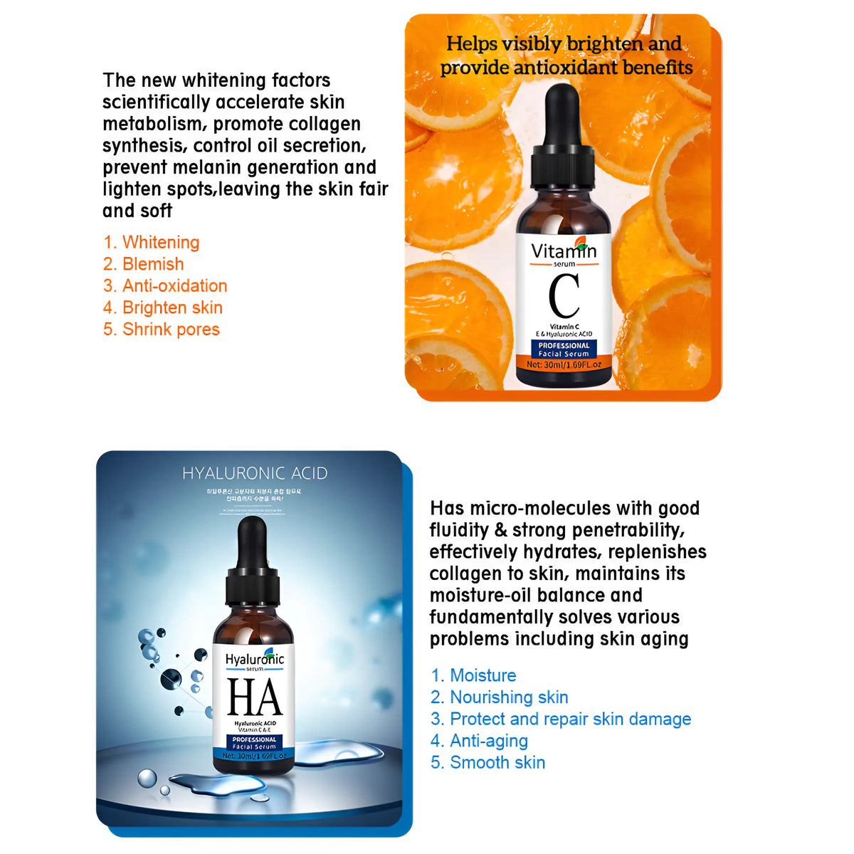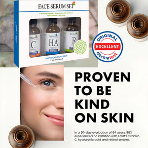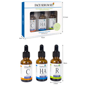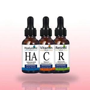 Combines three essential serums—Vitamin C, Retinol, and Hyaluronic Acid—for a complete skincare transformation. -