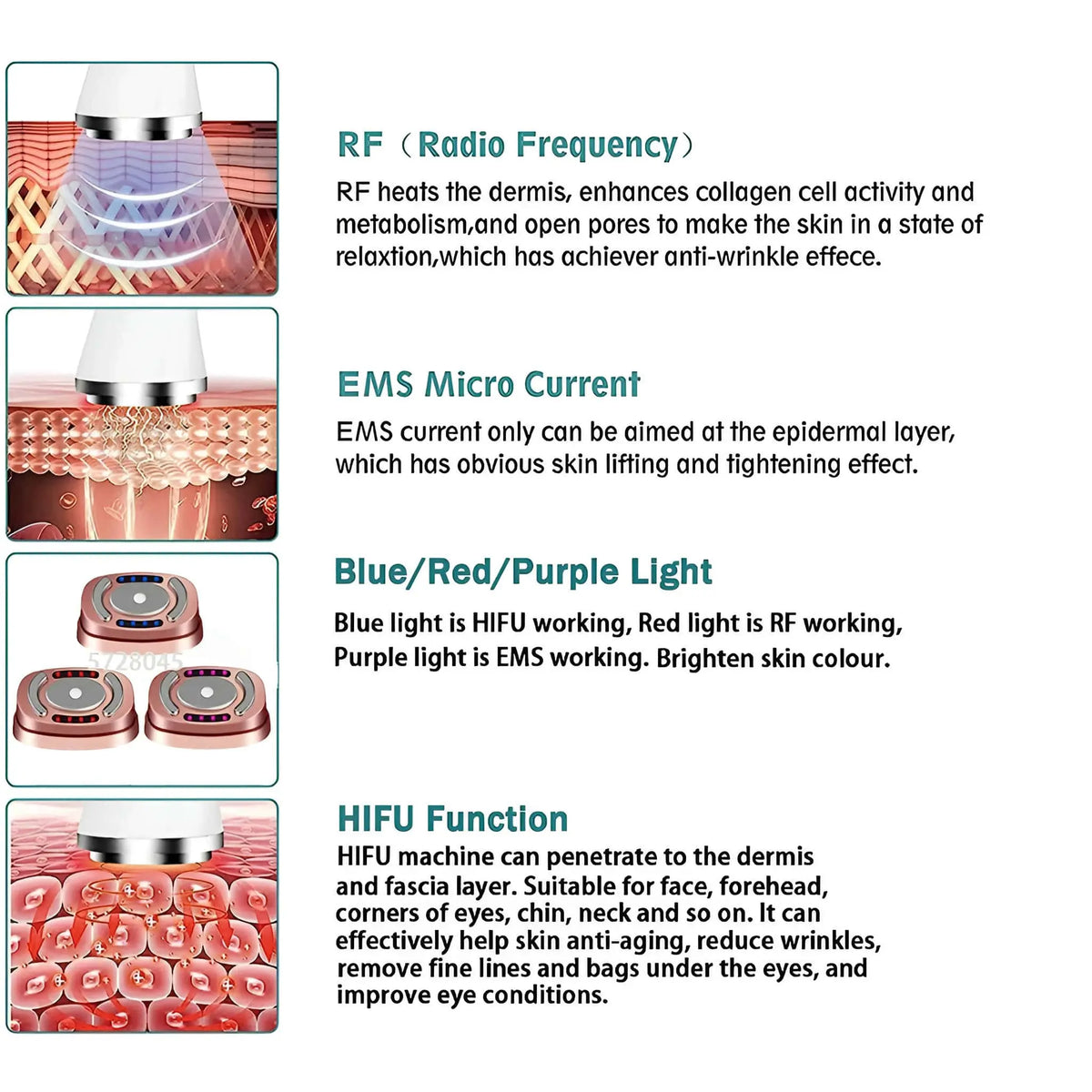 Our innovative HIFU LED light facial device uses hot treatment to open your pores, allowing for deeper and more delicate skincare. Witness your skin texture transform and radiate a healthy glow.