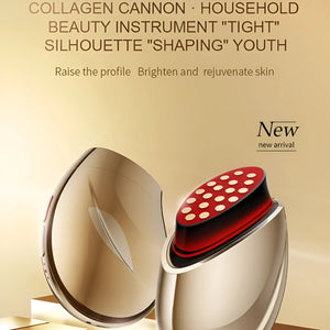 Introducing CollaFirm Essence — an advanced skin tightening device that transforms your skincare routine. Featuring a large energy head plus 20 smaller heads, it precisely stimulates collagen to boost elasticity and lift your skin. The oval-shaped red LED light strengthens your skin barrier for a smooth, radiant complexion.
