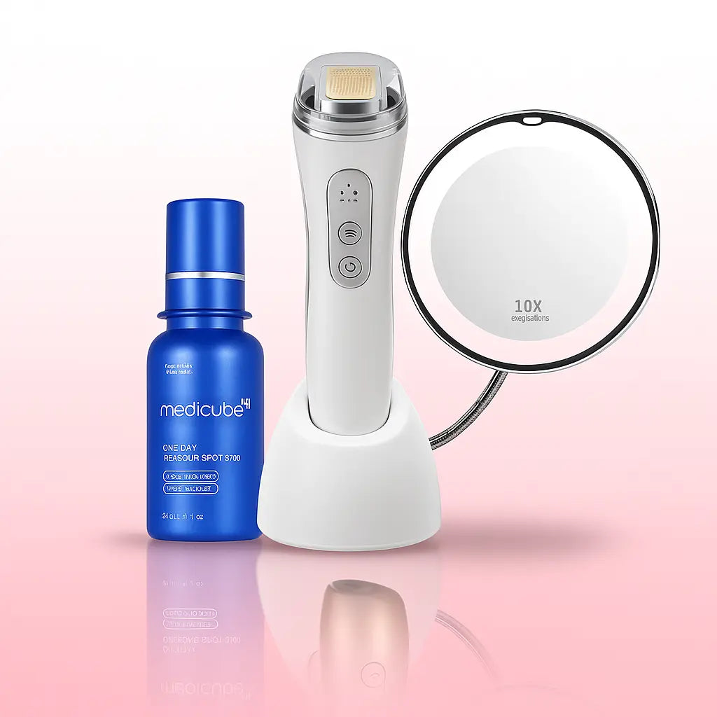 Comprehensive Anti-Aging Ritual: Each component targets a different layer of skincare—structural firmness (RF), cellular rejuvenation (exosomes), and application precision (mirror)—for a complete and indulgent experience.