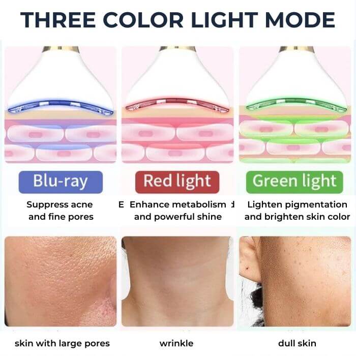 Our device utilizes advanced technology, including magnetic heat treatment, low-frequency sonic vibrations, and LED light therapy with blue, green, and red lights, to penetrate the deeper layers of the skin for improved nutrient absorption. Our product helps lift and tighten the skin and smooth out fine lines and wrinkles, giving you a more youthful appearance.