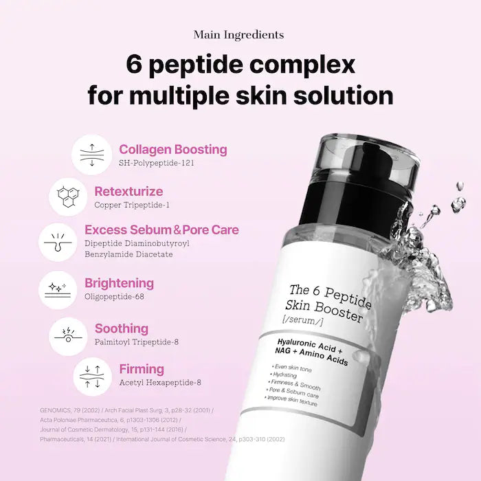 Whether you're dealing with dryness, dullness, or early signs of aging, the 6 Peptide Skin Booster Serum has you covered. It's powerful blend of peptides, vitamins, and hydrating ingredients works together to smooth, firm, and brighten your skin, giving you a healthy, radiant look with every use.