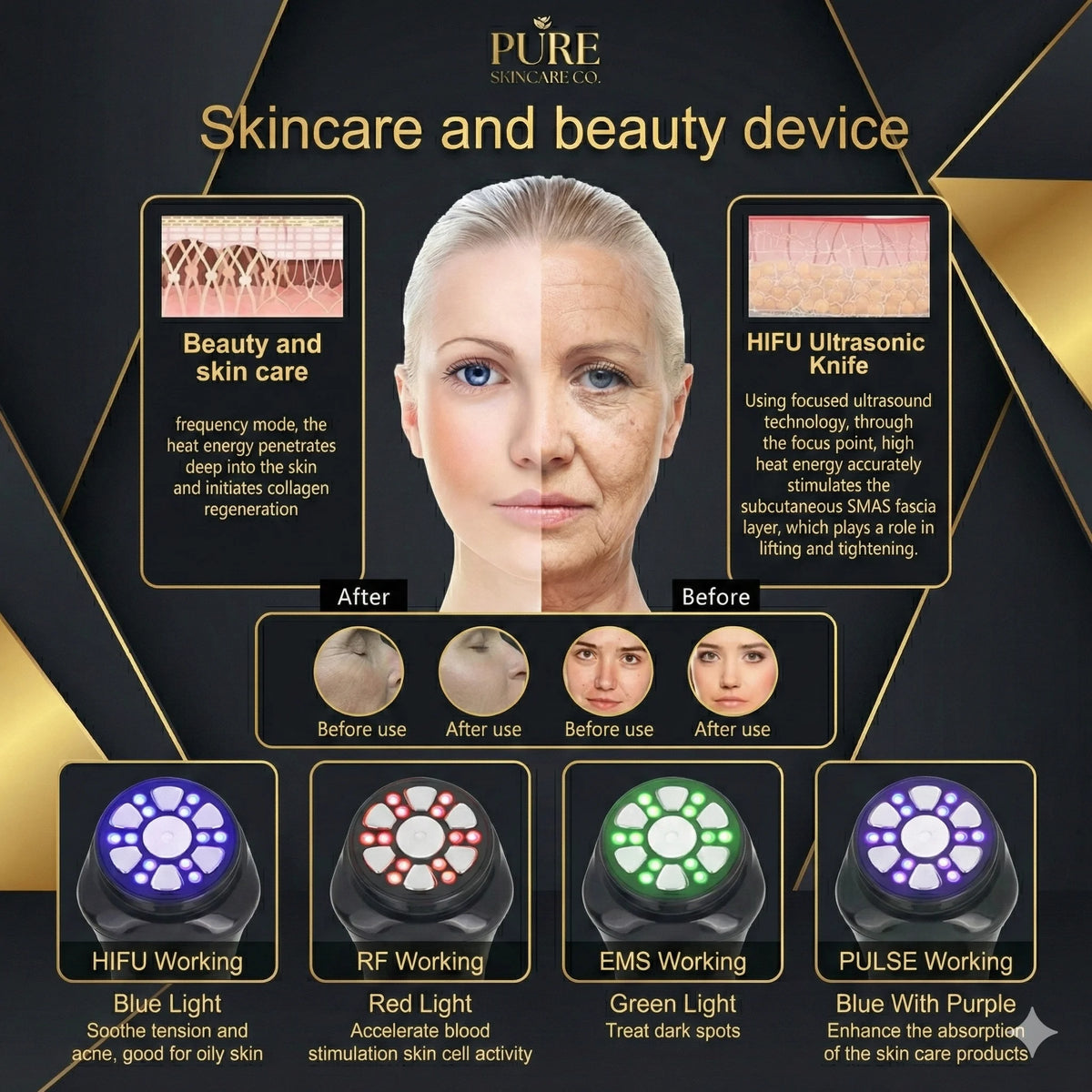 Triple-Modality Precision: Synchronizes HIFU (lifting), RF (smoothing), and EMS (toning) for structural renewal.